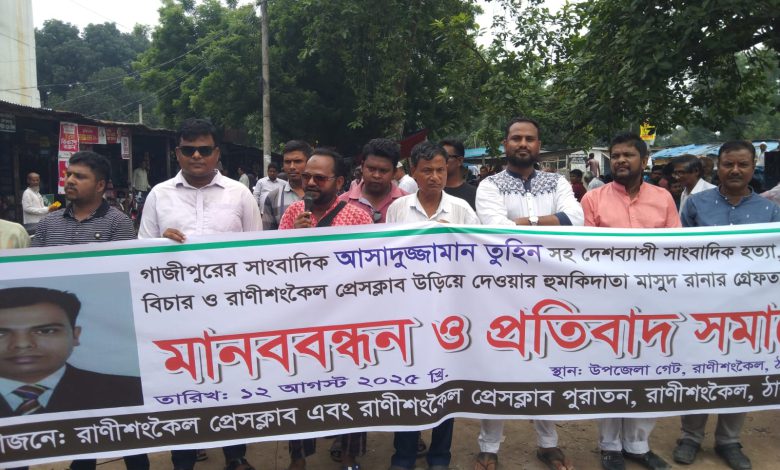 Read More »অভিশেকচন্দ্র রায় ঠাকুরগাঁও প্রতিনিধি:- গাজীপুরের সাংবাদিক আসাদুজ্জামান তুহিন সহ দেশব্যাপী সাংবাদিক হত্যা, নির্যাতনের বিচার এবং রাণীশংকৈল প্রেসক্লাব উড়িয়ে দেওয়ার হুমকিদাতা…