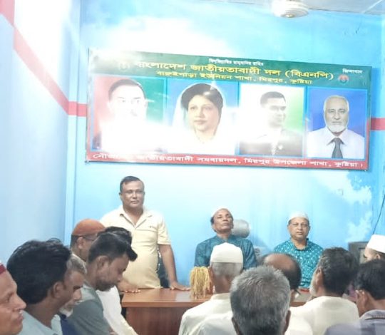 Read More »নিজস্ব প্রতিনিধিঃ বাংলাদেশ জাতীয়তাবাদী দলের কুষ্টিয়ায় মিরপুর উপজেলার বারুইপাড়া ইউনিয়ন বিএনপি শাখা কর্তৃক আয়োজিত, দেশনেত্রী সাবেক তিন তিনবারের সফল প্রধানমন্ত্রী…